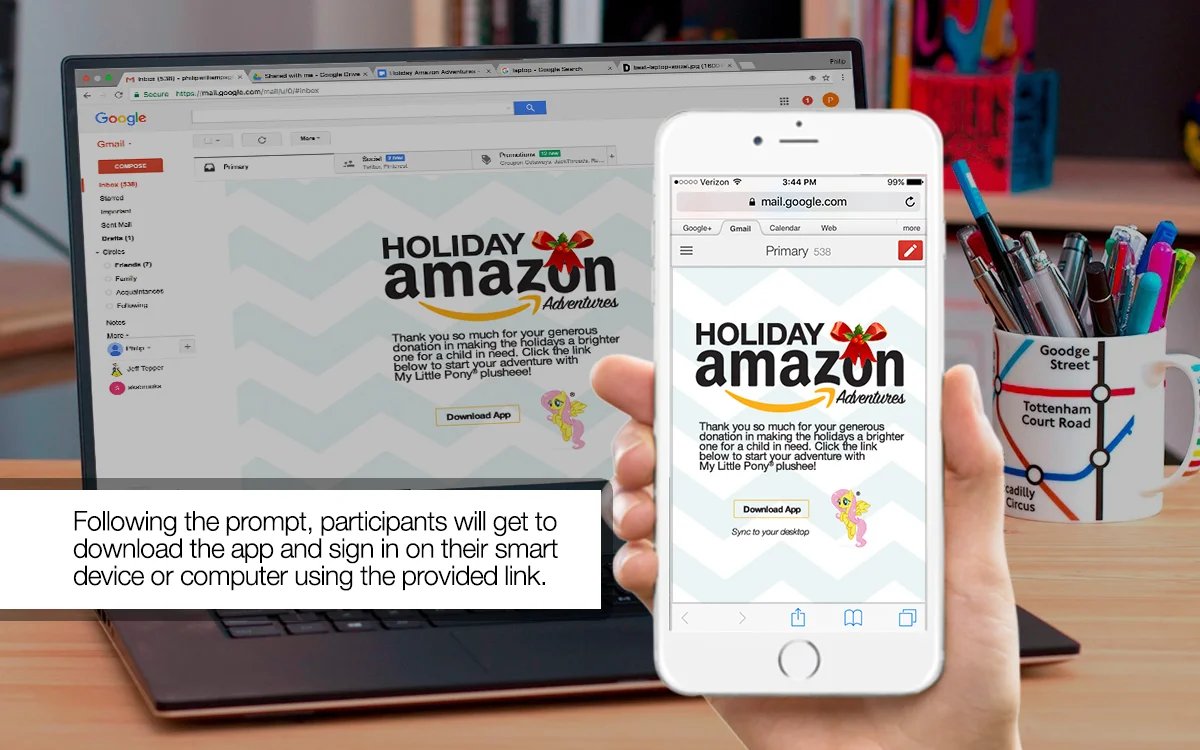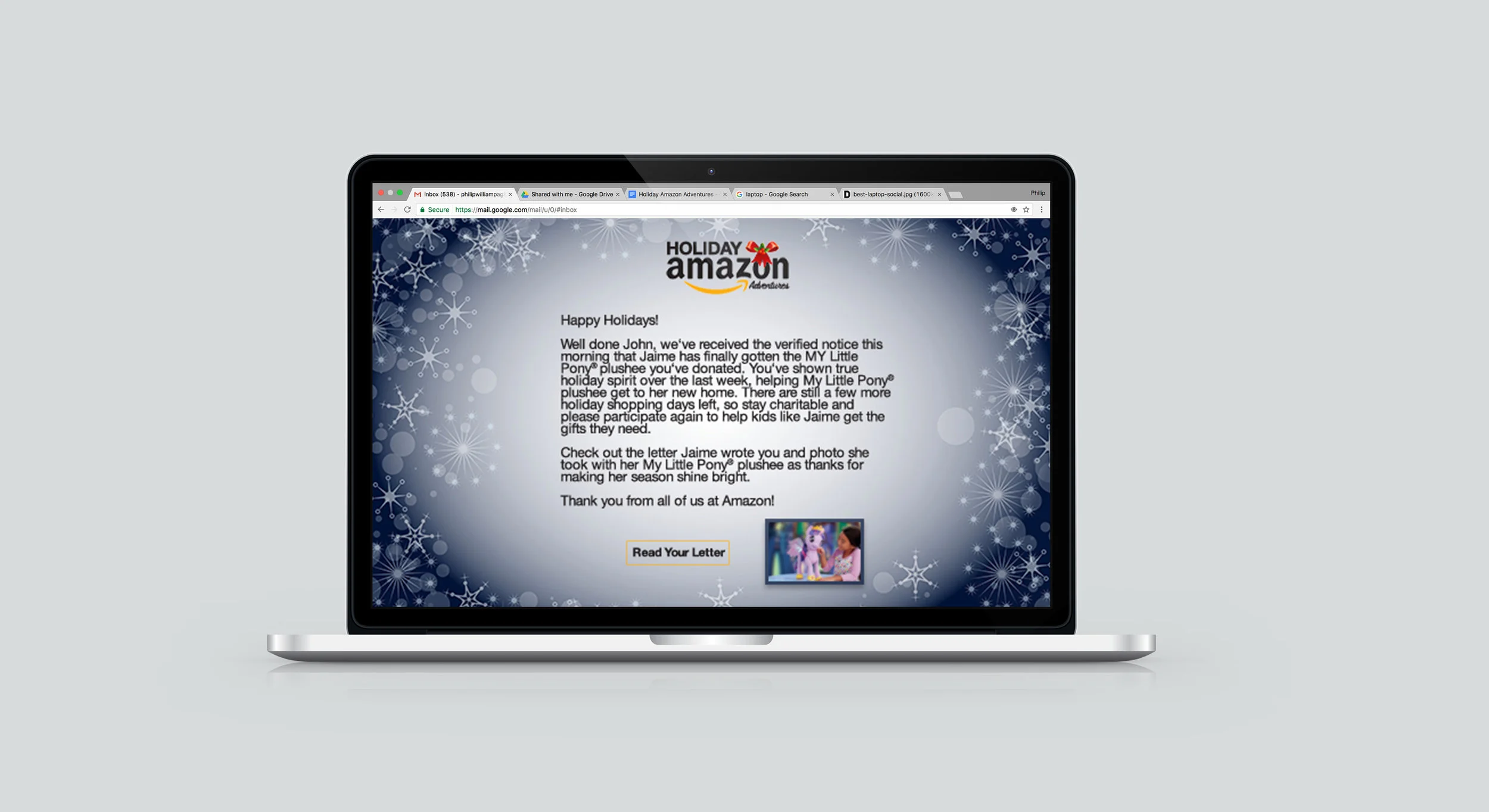 Amazon partners up with Hasbro during the holiday season to incentivize consumers to donate toys to needy kids.